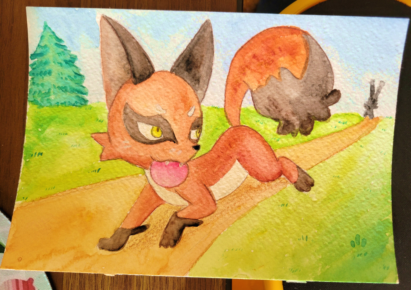 A 5x7 inch watercolor painting of Nickit.