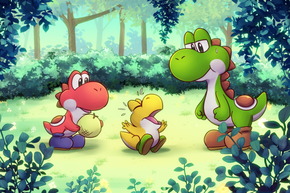 A small 4x6inch print of Yoshis! It's printed on thick paper and is the size of a postcard. Ships in a flat envelop.