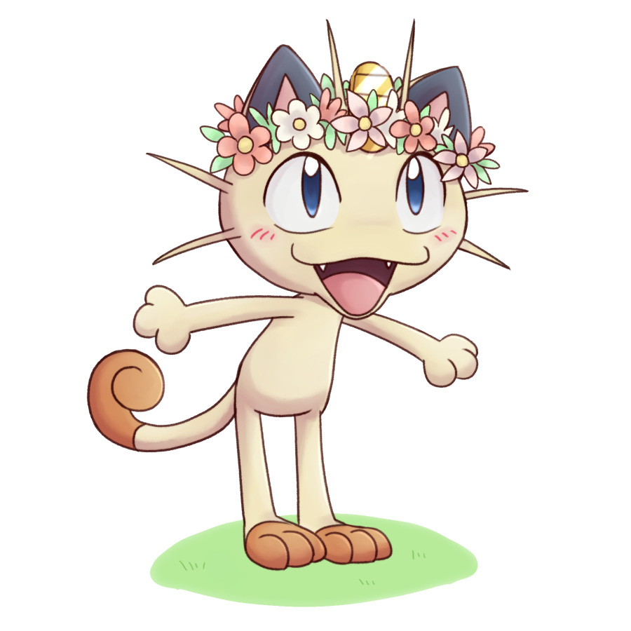 2.5inch vinyl sticker Meowth, with holographic hearts on it!